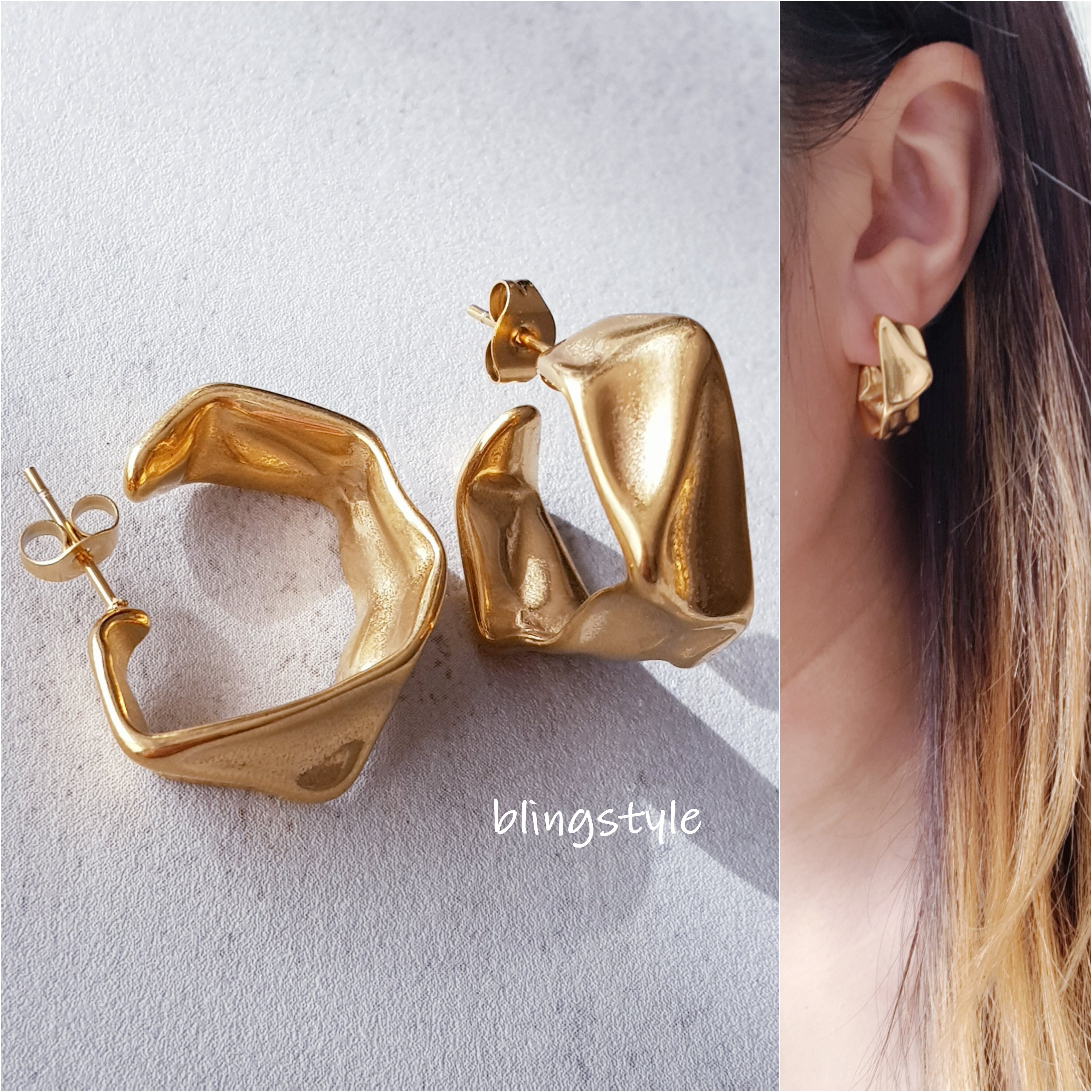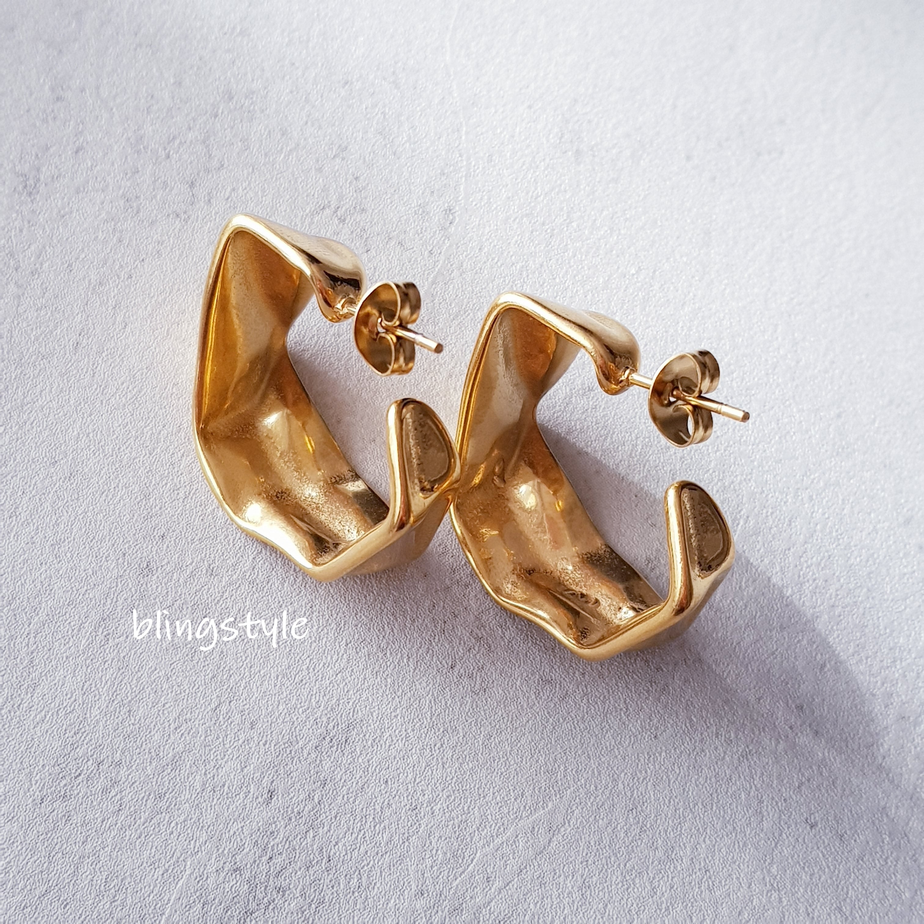 ゴールド カジュアル Cウェーブ サージカルステンレス ピアス イヤリング