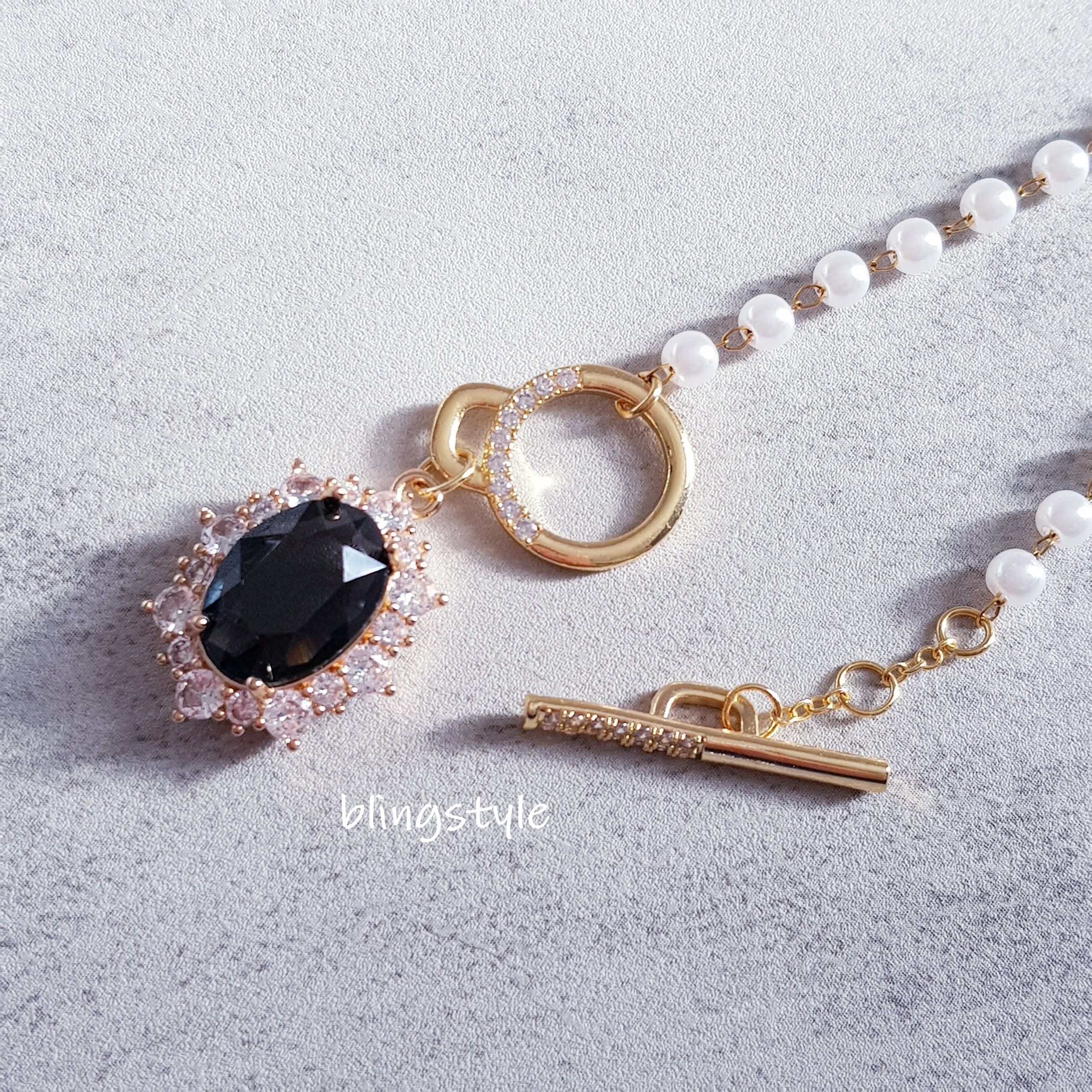 素材:真鍮、キュービックジルコニア、合成パール、ステンレスチェーン